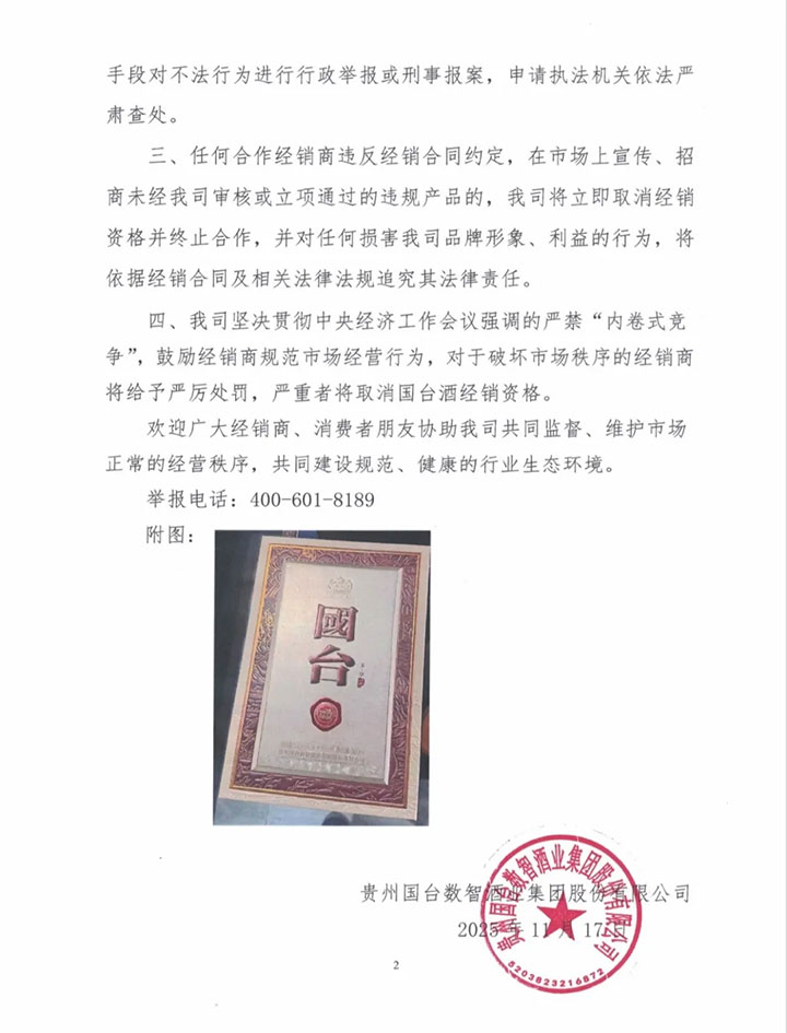 从行业层面来看,国台酒的维权举措具有典型意义:一方面,通过明确产品真伪边界与举报渠道,搭建起 “企业 + 经销商 + 消费者” 的协同监督体系;另一方面,以法律追责与渠道管控双管齐下,向市场传递 “零容忍” 信号,为行业品牌维权提供了可参考的实践路径。